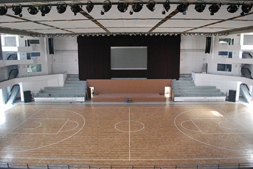 天津财经大学体育馆扩建及改造项目,总建筑面积6820平方米,场地整体建筑为正方体,场地大小(包括比赛场地)为长50米,宽50米,比赛场地离网架高度约为10米,观众席为两面看台构成。满足体育馆大型体育赛事、集会和基本文艺演出扩声的需求。