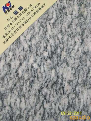 我公司位于新兴的石材发展城市——日照。公司地理位置优越,北临“江北第一石材重镇”--五莲,南接莒南青基地--茱芦,紧靠222省道,南来北往交通方便。公司以大理石板材、路沿石为主要产品,主营石材品种有银麻、中国黑、莒南青等石材。欢迎广大朋友前来洽谈。 各种规格日照银麻,优质银麻,供应优质银麻,银麻图